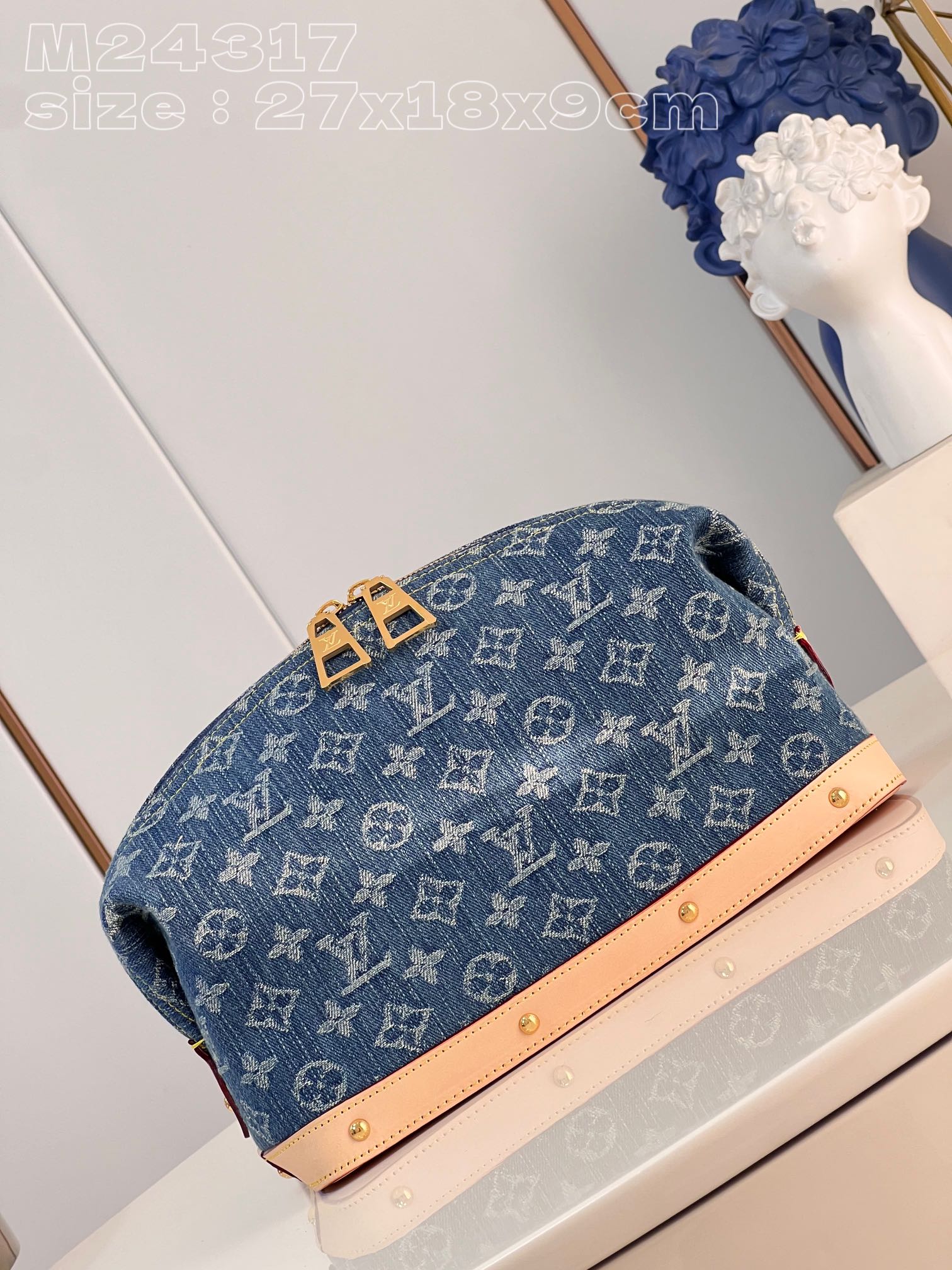 [M24317] Monogram Denim 원단으로 트렌디하고 여유로운 구성의 Pochette Cosmétique 파우치입니다.