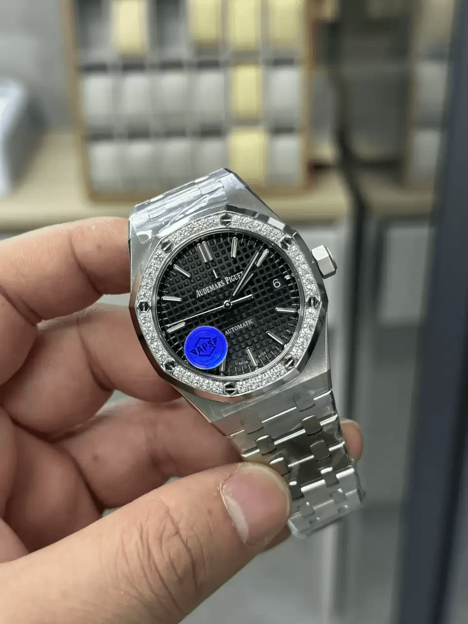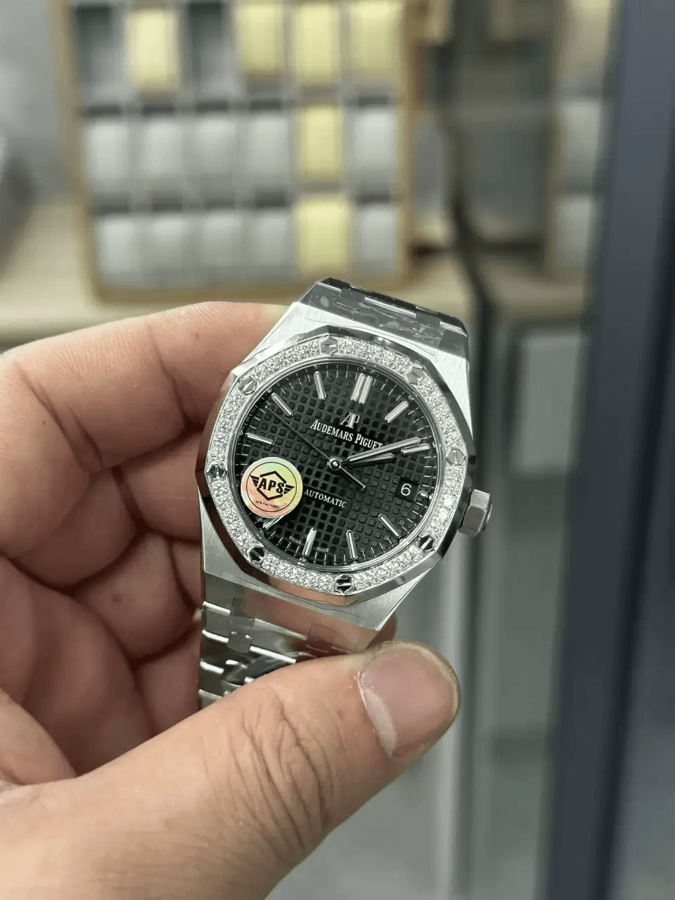 로얄오크 37MM 블랙 다이얼 다이아베젤 / APS 15451 / 37mm / 두께 9.8mm, 3120 무브먼트