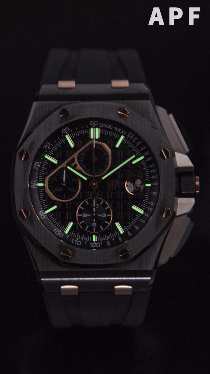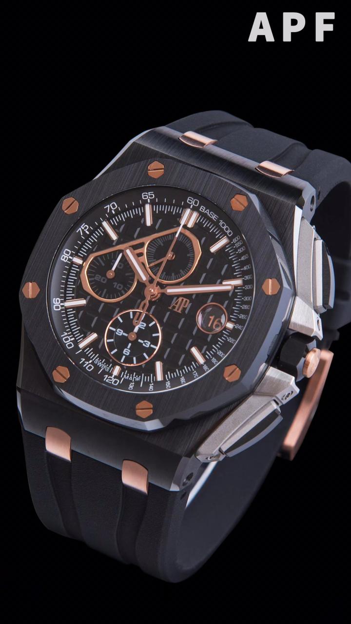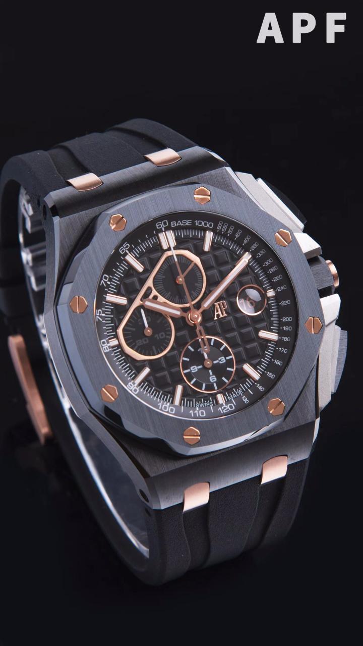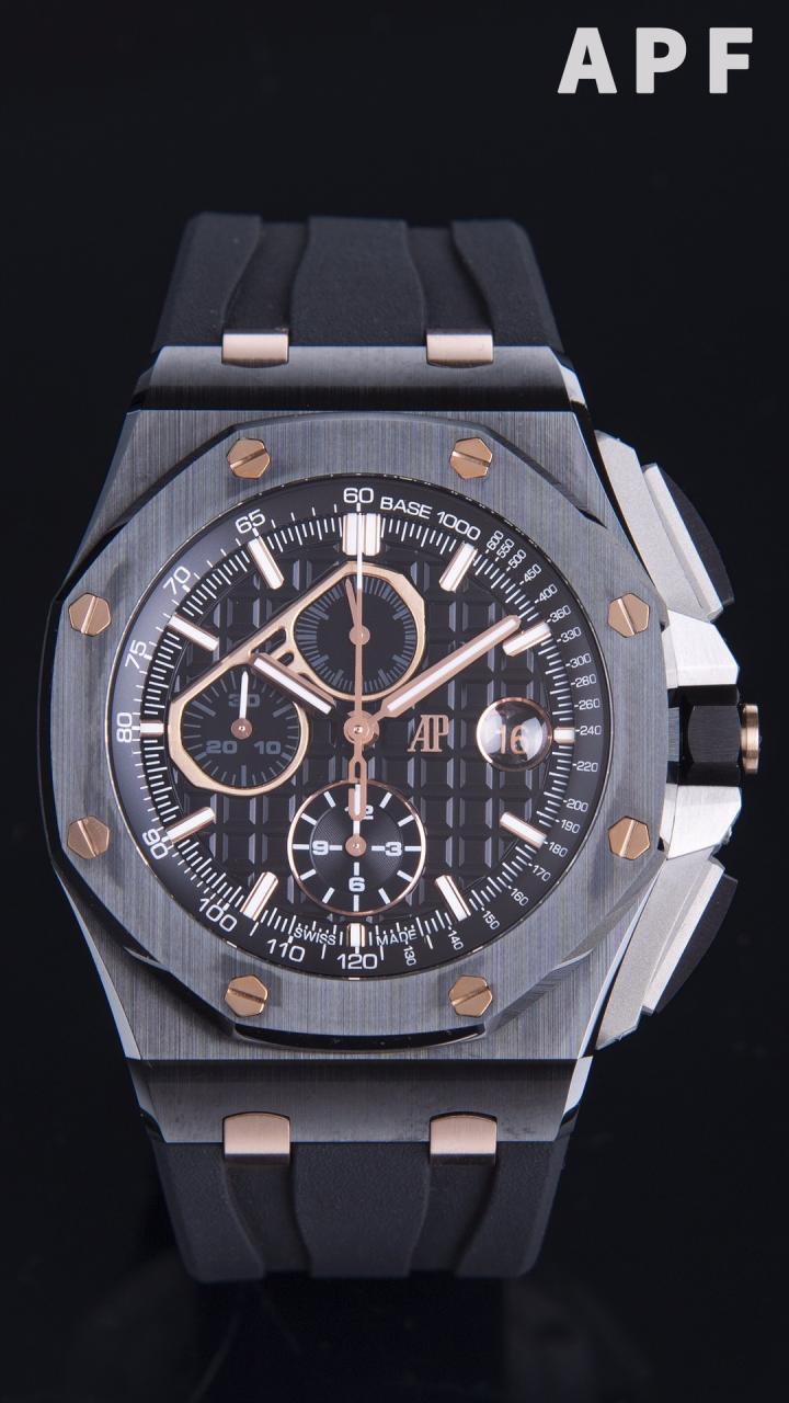 로얄오크 오프쇼어 블랙/로즈골드 다이얼 러버밴드 / APF 26405CE / 44mm / cal.3126 무브먼트로 업그레이드!