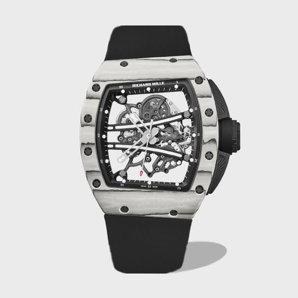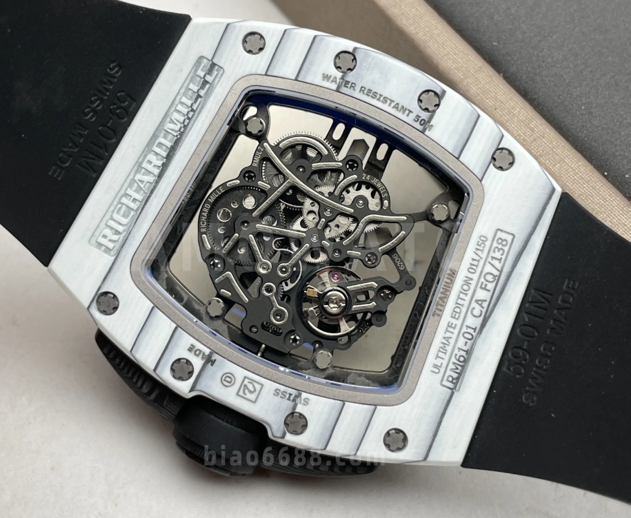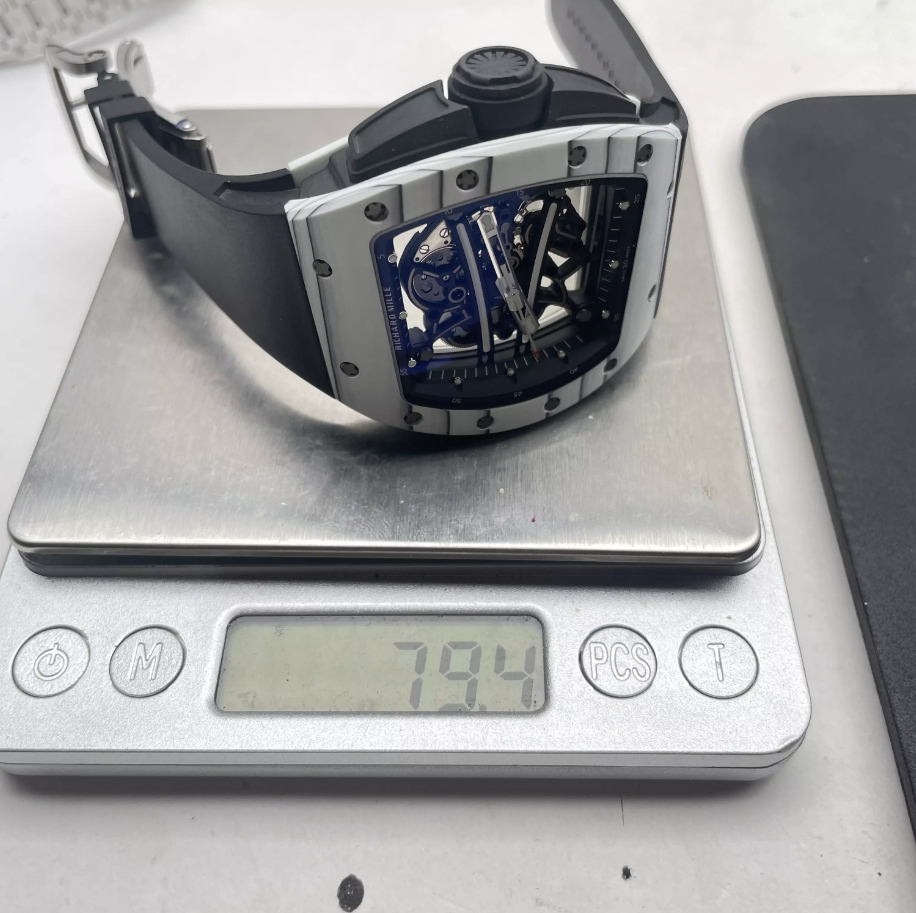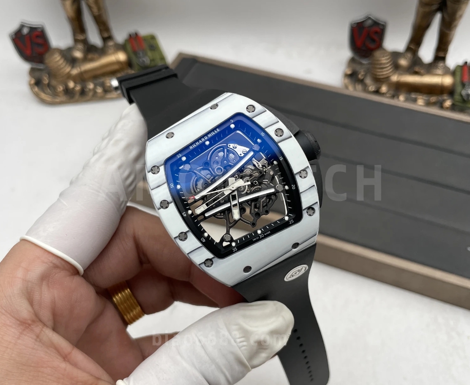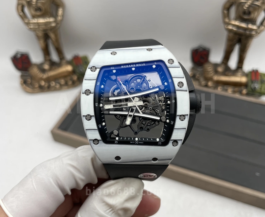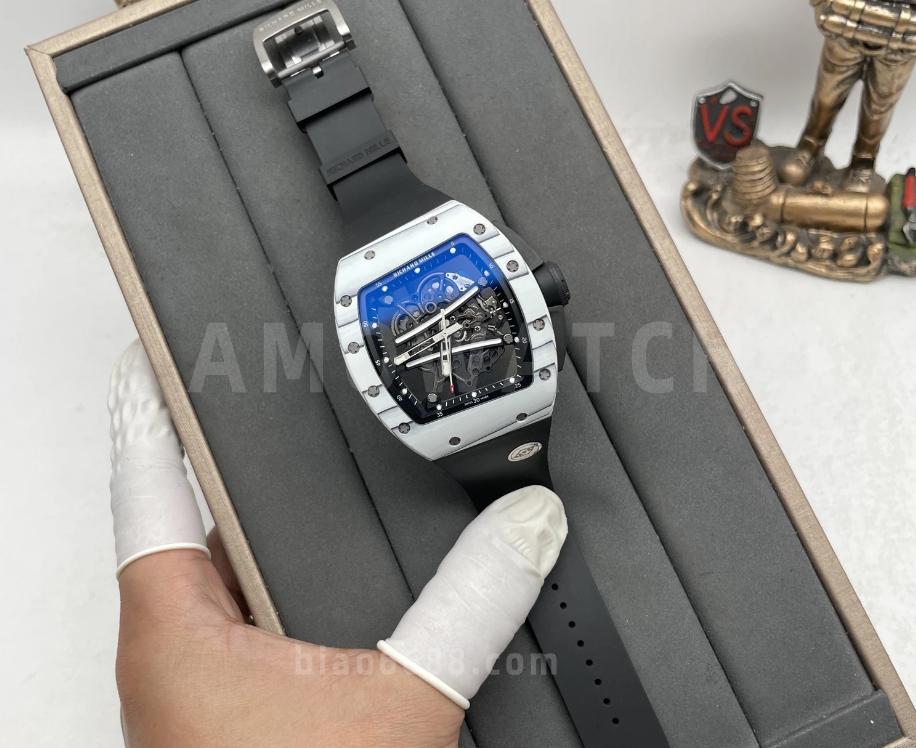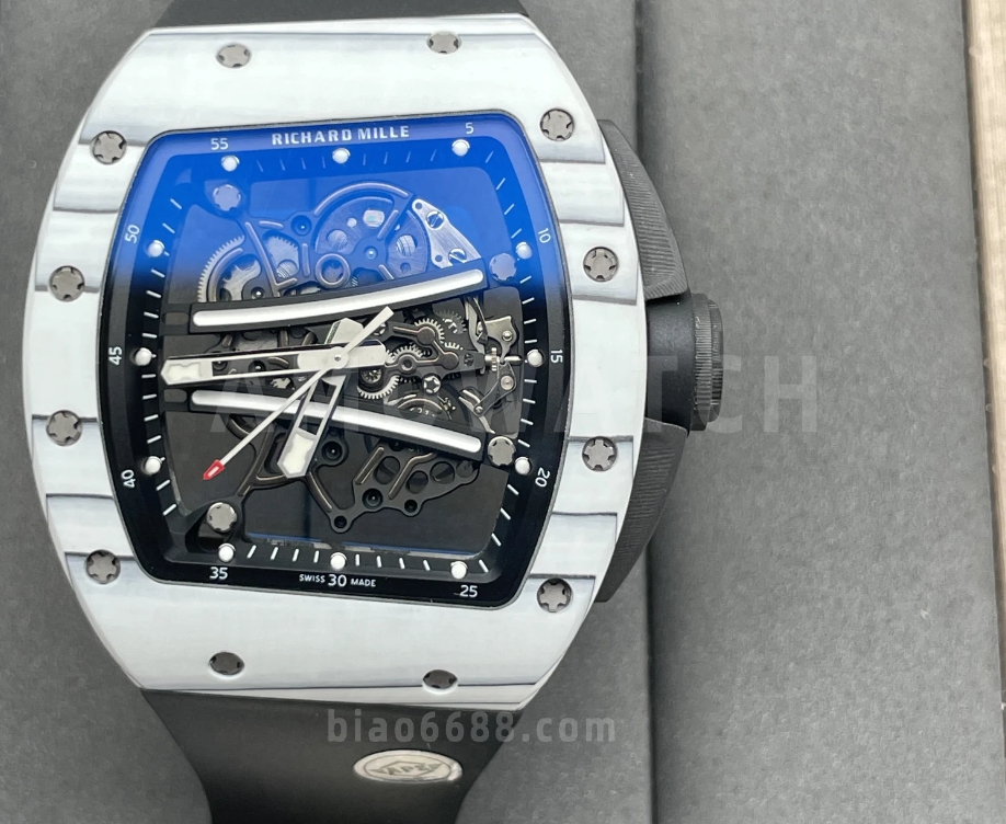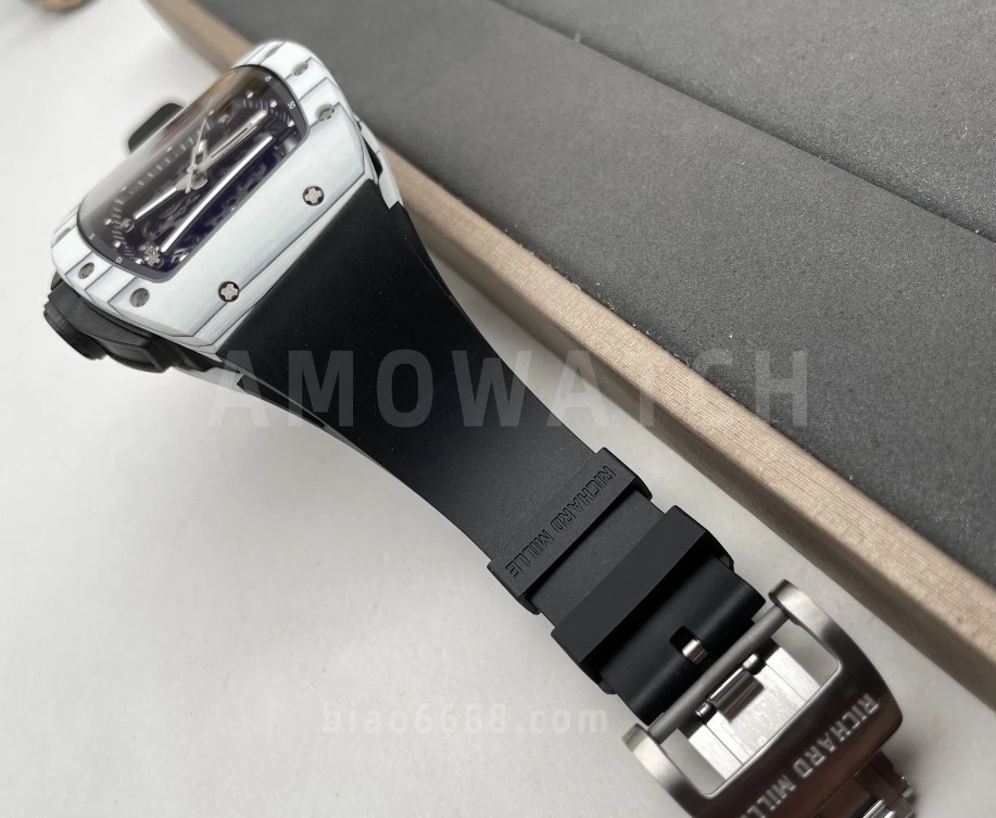 요한 블레이크 화이트 블랙 러버밴드 NTPT / APS RM6101 / 43mm / 아시아 슈퍼클론 RMUL2 스켈레톤 무브먼트, 정품과 동일한 구조