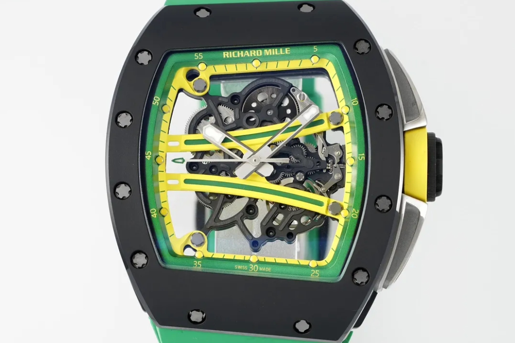 RM61-01 블랙 세라믹 1:1 베스트 에디션 그린 러버 스트랩 RMUL2 / ZF RM061 / 43mm / 현재 최고의 아시아 RM 무브먼트, 정품과 동일한 구조