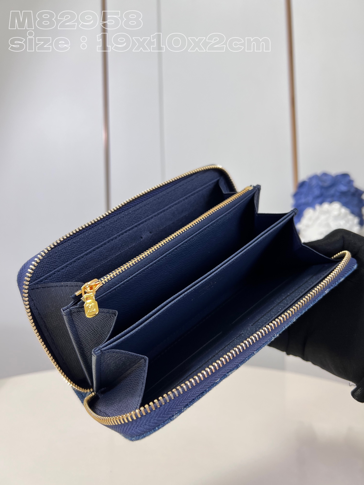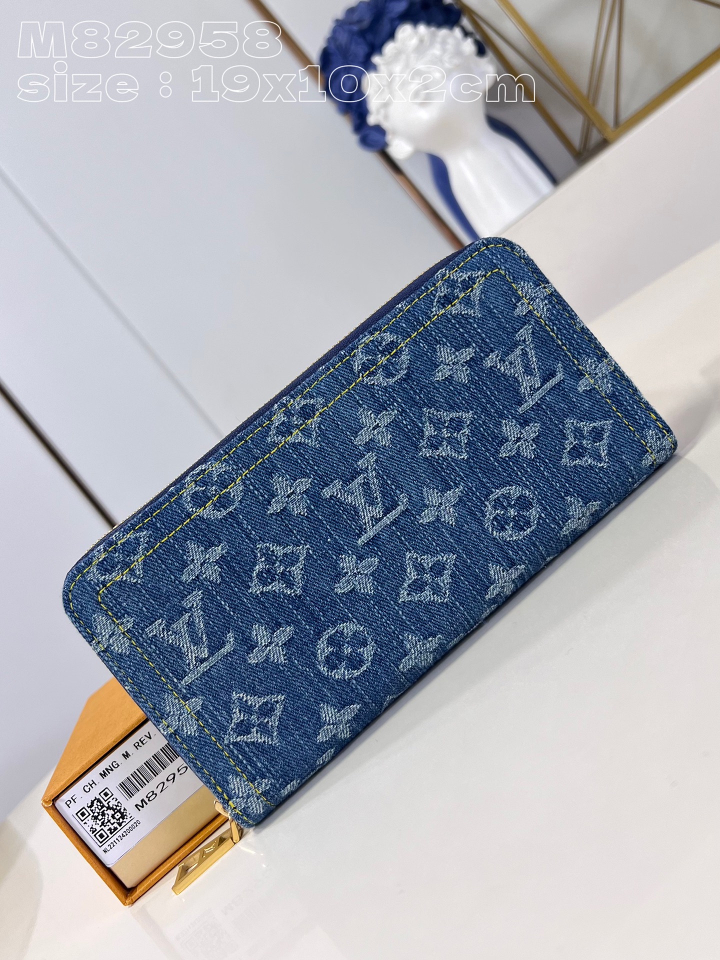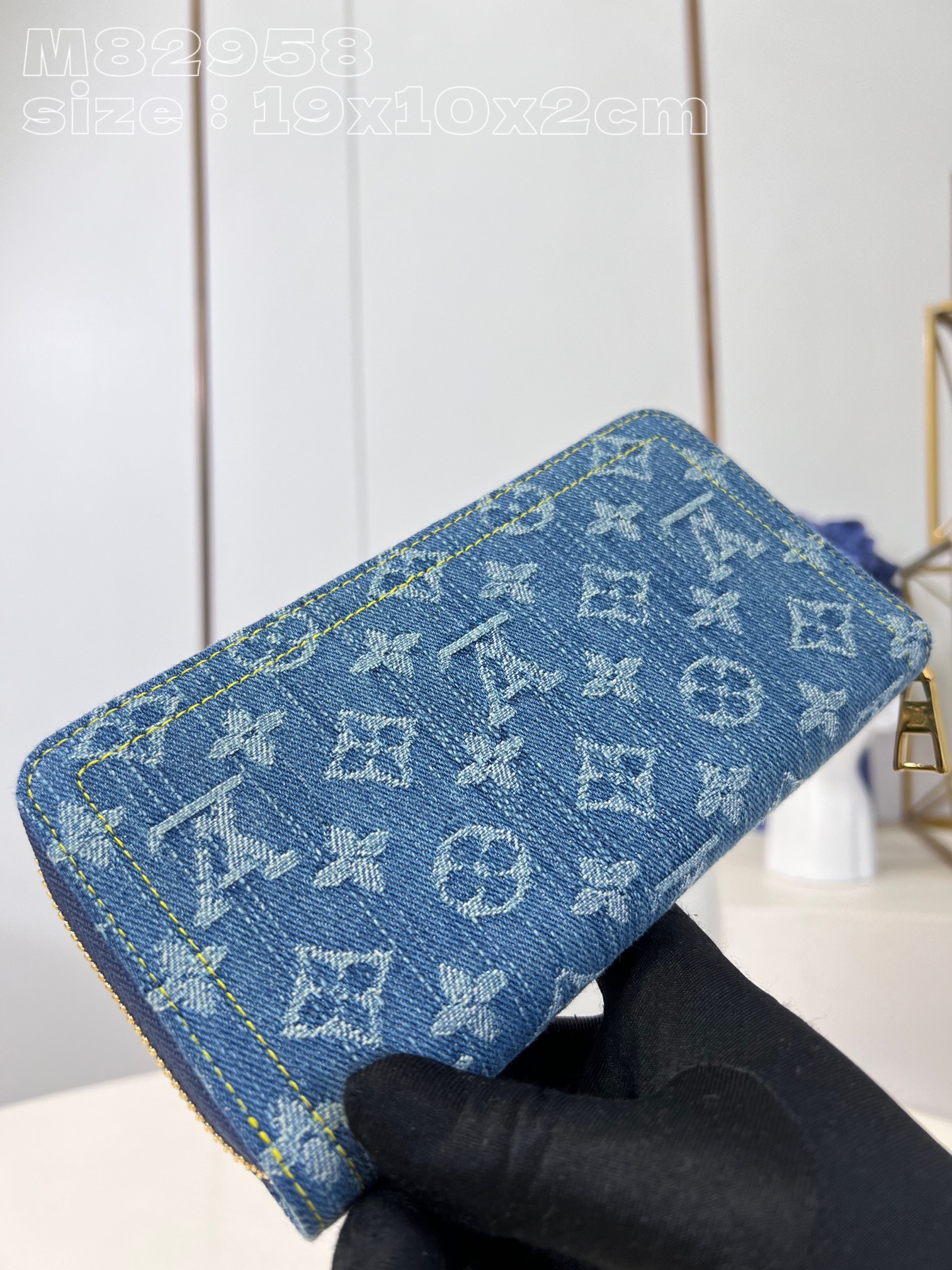 【M82958】모노그램 자카드 데님으로 재연된 지피 지퍼 지갑으로 루이비통의 시그니처인 모노그램 Dld 패턴을 스티치 기법으로 재연하여 스톤 워싱 효과를 줍니다.